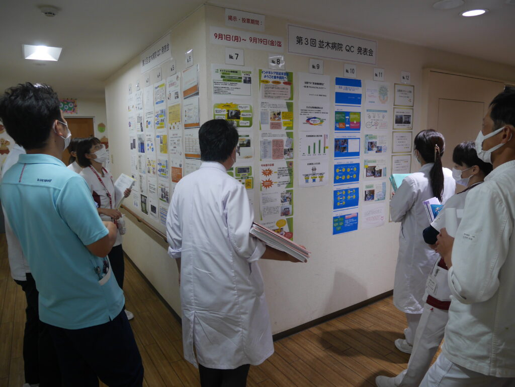 QC活動とは、病院で働くスタッフが「医療の質・安全・サービスを(Quality)向上していく(Control)業務改善活動」の事です。